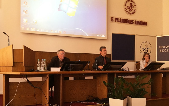 Зала Сенату Щецинського університету (з галерею портретів його ректорів) перед початком роботи конференції.