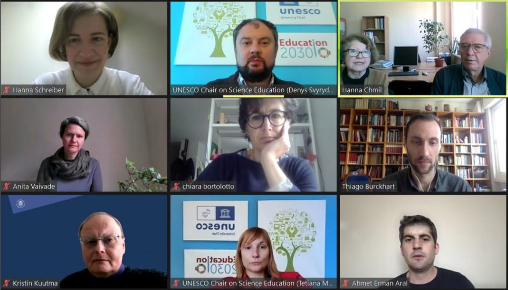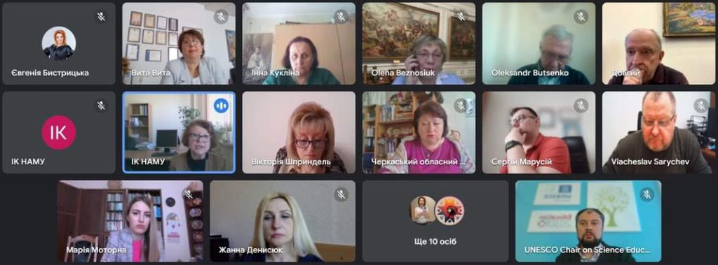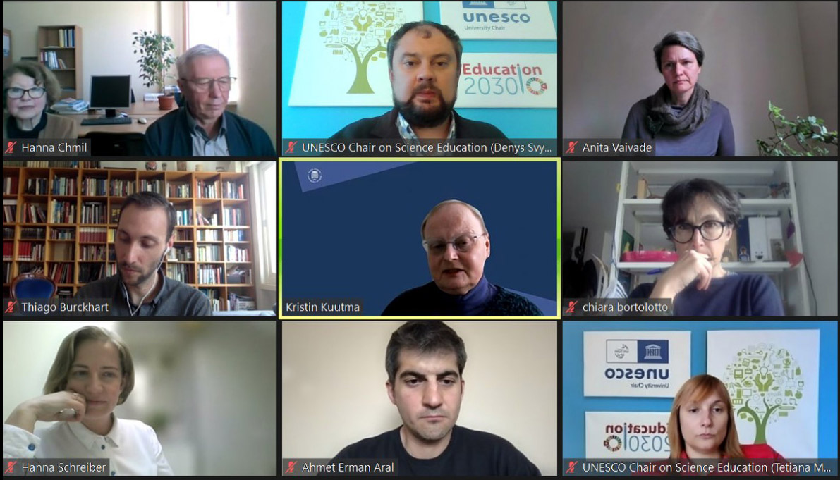 (модератор: радник дирекції ІК НАМ України Олександр Буценко) за участі Інституту культурології НАМ України, Кафедри ЮНЕСКО з наукової освіти Українського державного університету ім. М. Драгоманова, Кафедри ЮНЕСКО «НКС і компаративне законодавство» Римського університету Унітельма Сап’єнца, Італія (доктор Тьягу Буркгард), Кафедри ЮНЕСКО «Політика і законодавство у сфері нематеріальної культурної спадщини» Латвійської академії культури (проф. Аніта Вайваде), Кафедри ЮНЕСКО з прикладних досліджень у сфері НКС Університету Тарту, Естонія (проф. Кристін Куутма), Кафедри ЮНЕСКО з питань НКС у державному і глобальному управлінні Варшавського університету, Польща (проф. Ганна Шрайбер), Кафедри ЮНЕСКО з питань НКС і сталого розвитку Університету Сержі-Понтуаз, Париж, Франція (проф. К’яра Бортолотто), Кафедри ЮНЕСКО «НКС у формальній і неформальній освіті» Університету Анкари, Туреччина (проф. Ахмет Ернан Арал).