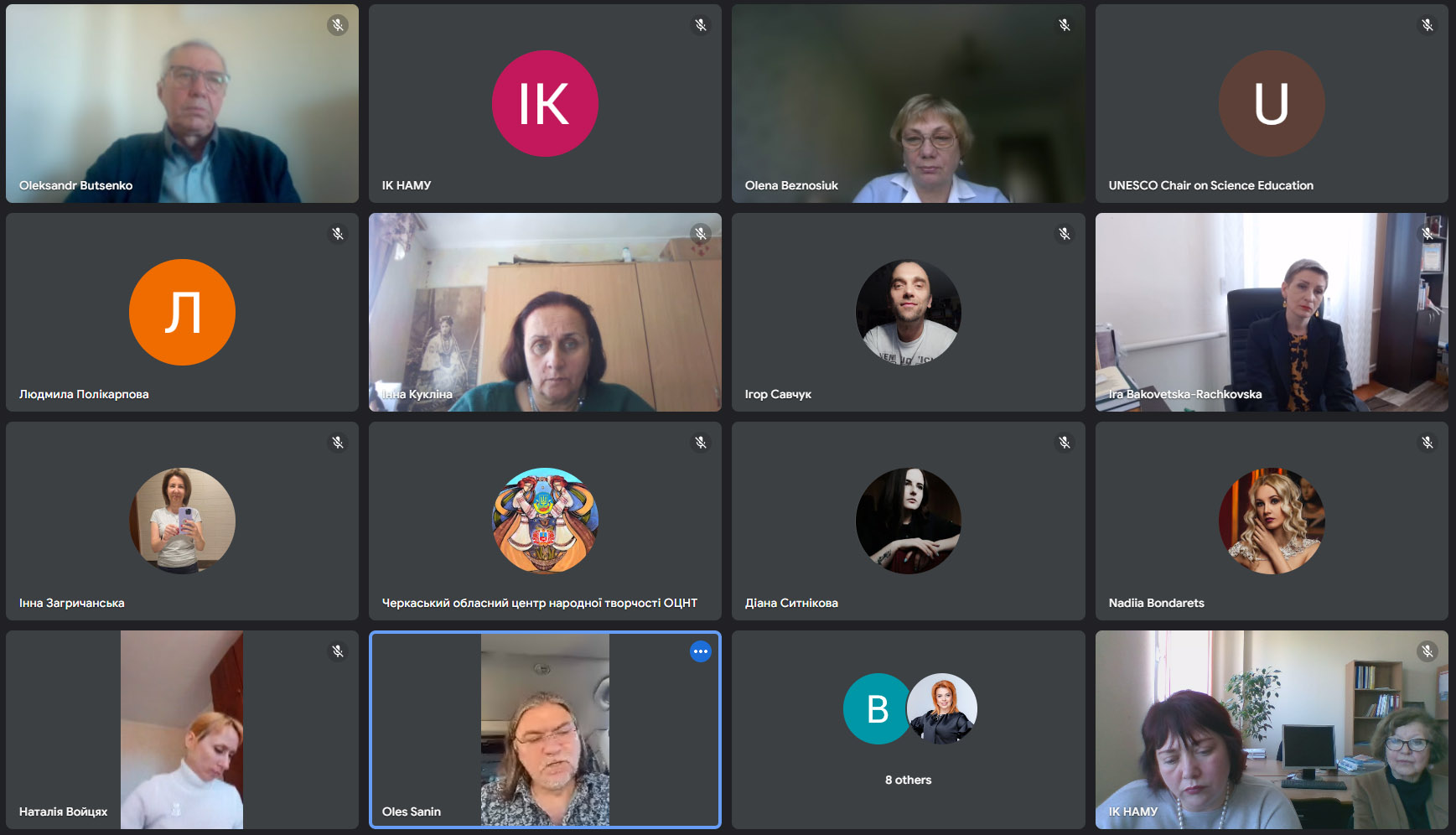Конференція складалася з пленарного засідання «70 років України в ЮНЕСКО: проблеми та перспективи» (модератор: директор Інституту культурології НАМ України Ганна Чміль), на якому виступив з доповіддю «Україна-ЮНЕСКО: сучасні реалії й культура завтрашнього дня» віцепрезидент НАМ України, відомий кінорежисер і митець Олесь Санін,