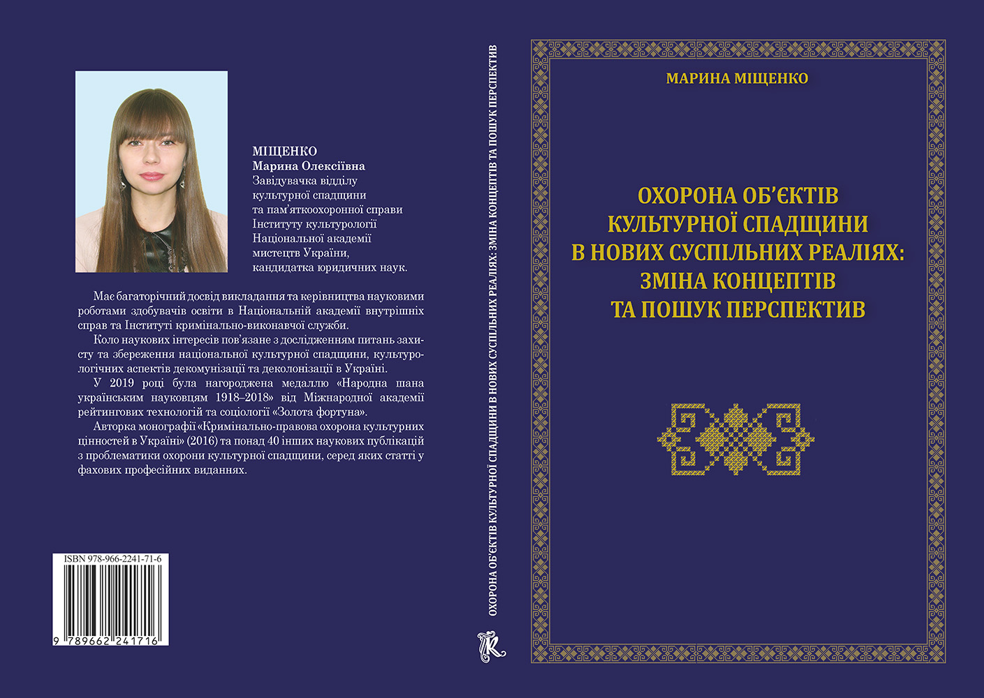 Maryna Mishchenko’s monograph «Protection of cultural heritage objects in new social realities: changing concepts and the search for perspectives» was written within the framework of the fundamental scientific topic of the Institute of Cultural Studies of the National Academy of Sciences of Ukraine «Cultural dimension of cultural heritage preservation: status, prospects and innovations».